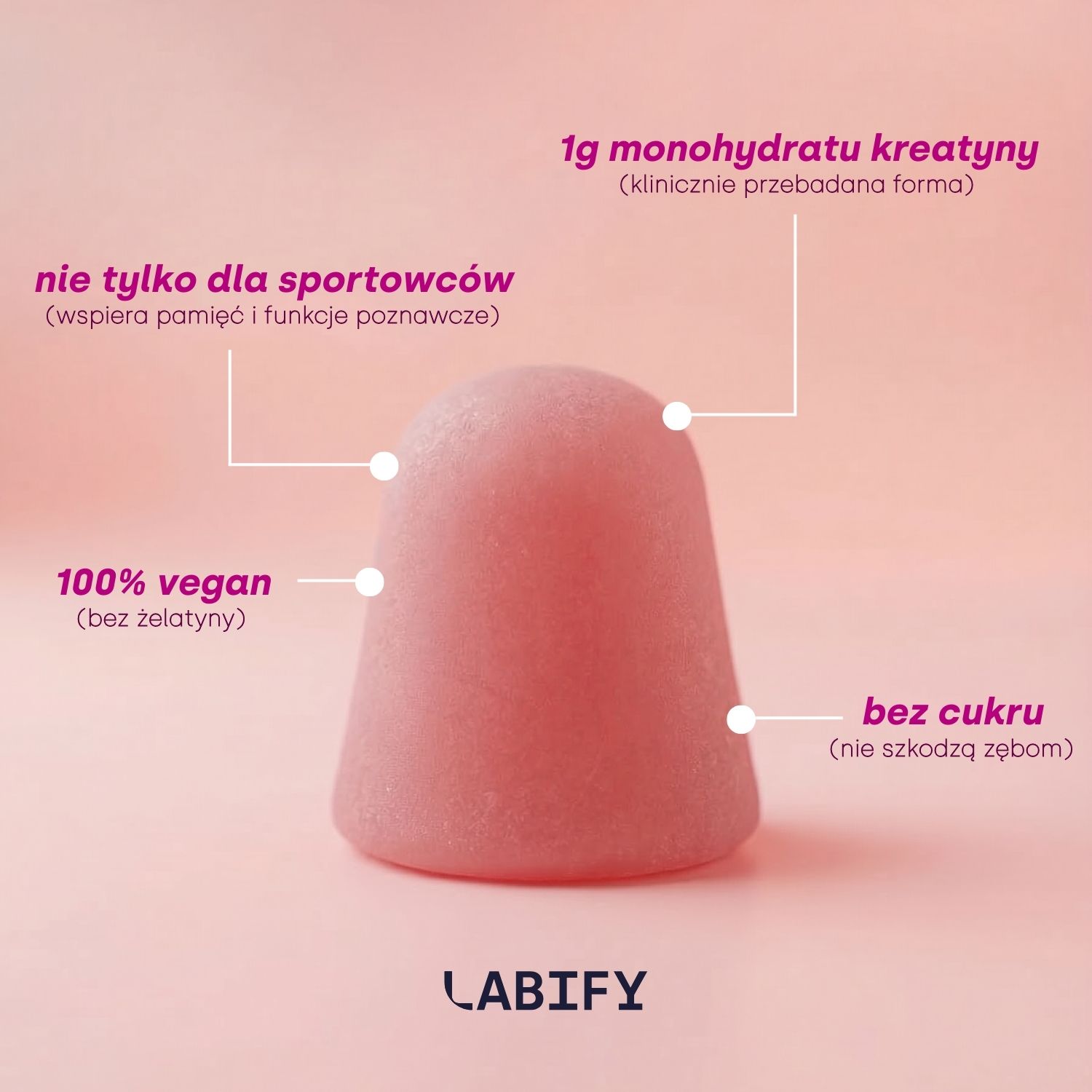 „Kreatyna to absolutny złoty standard w suplementacji sportowej. W LABIFY zamknęliśmy ją w formie żelek, aby maksymalnie ułatwić jej regularne przyjmowanie – bo to właśnie systematyczność jest kluczem do wzrostu wydolności. To bezpieczne, wegańskie i niezwykle skuteczne wsparcie dla każdego, kto chce wyciągnąć ze swoich treningów jeszcze więcej.”