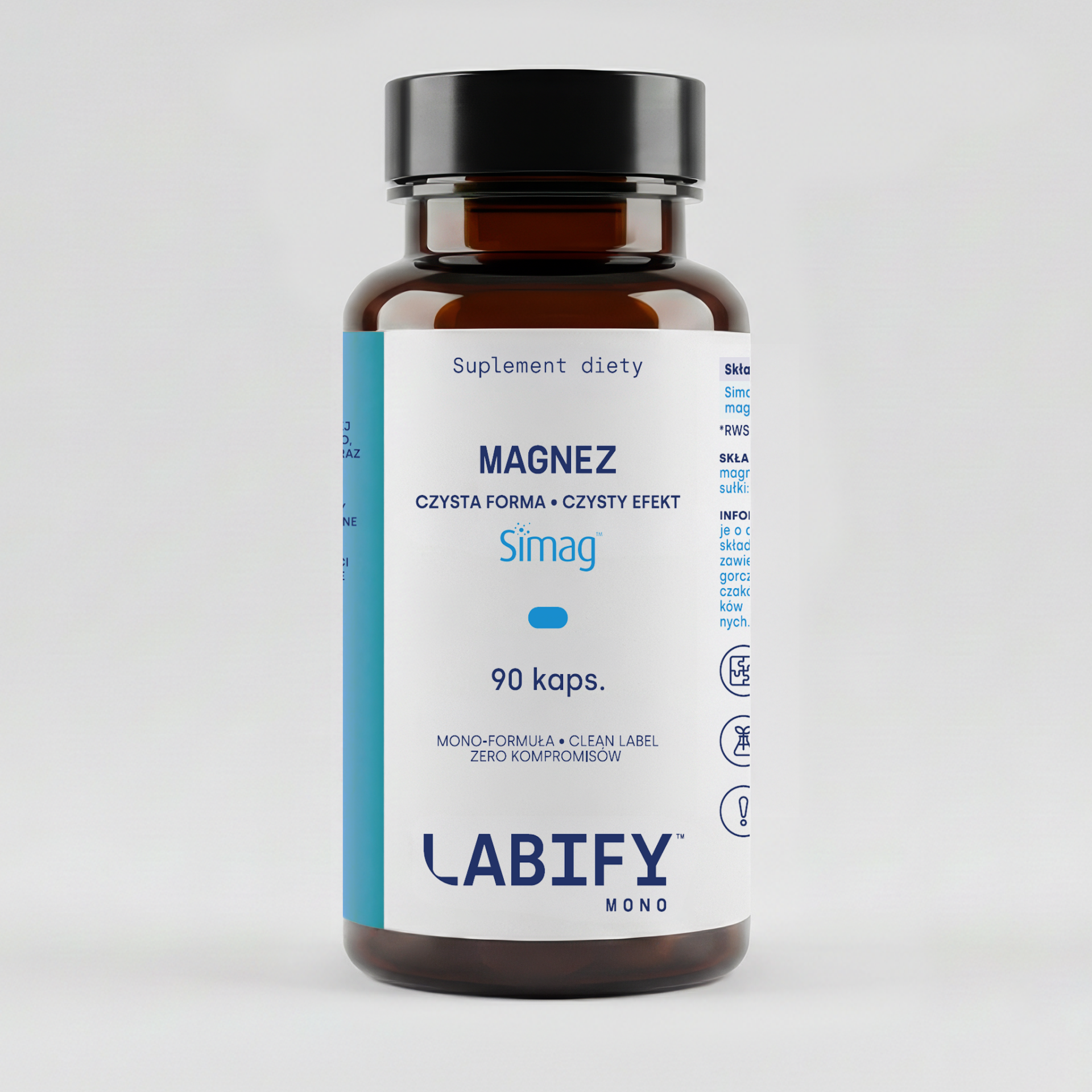 W Labify zdecydowaliśmy się na Simag® 55 — mineralny ekstrakt magnezu pozyskiwany z wody morskiej. Jego czystość, stabilność i dobra tolerancja przewodu pokarmowego sprawiają, że jest to forma przewidywalna i zgodna z wymaganiami nowoczesnej suplementacji. Dzięki temu organizm może efektywniej wykorzystywać magnez w kluczowych procesach fizjologicznych.