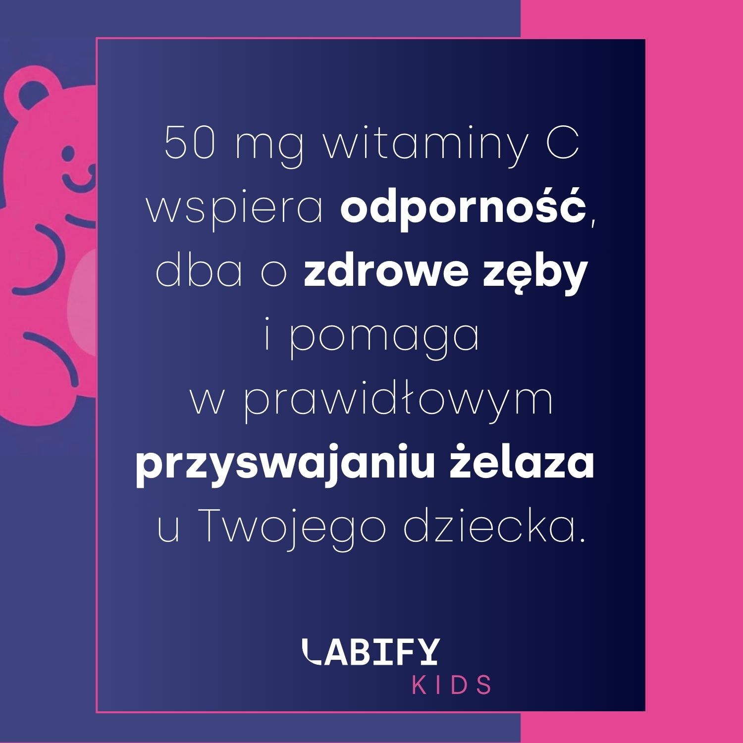 Skład żelków z witaminą C został dobrany tak, aby wspierać najważniejsze procesy w organizmie dziecka: prawidłowe funkcjonowanie układu odpornościowego, ochronę komórek przed stresem oksydacyjnym oraz prawidłową produkcję kolagenu — ważną m.in. dla skóry i dziąseł.