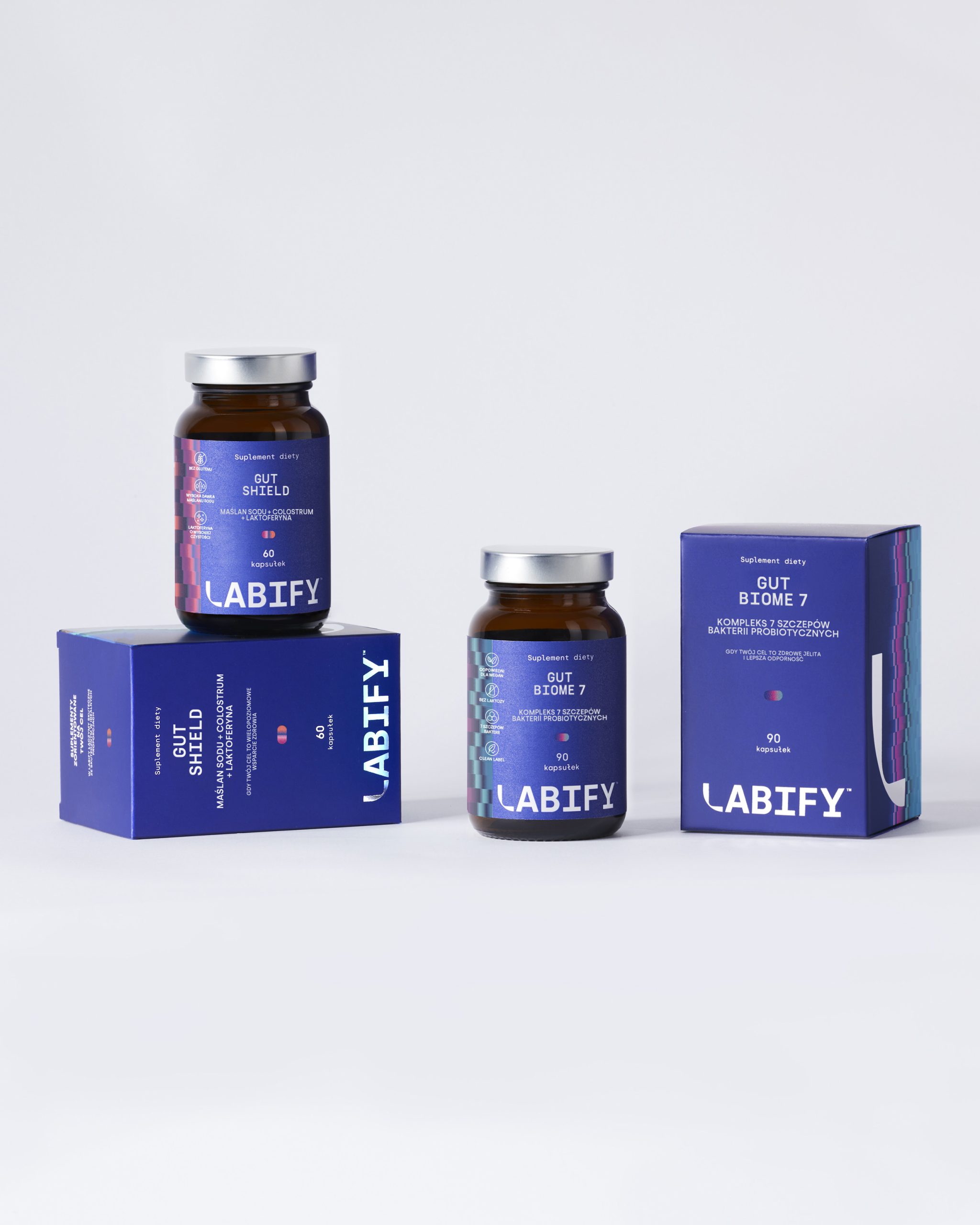 Dlatego w Labify połączyliśmy probiotyki, prebiotyki i bioaktywne białka mleczne w jeden spójny system – Gut Biome 7 + Gut Shield.